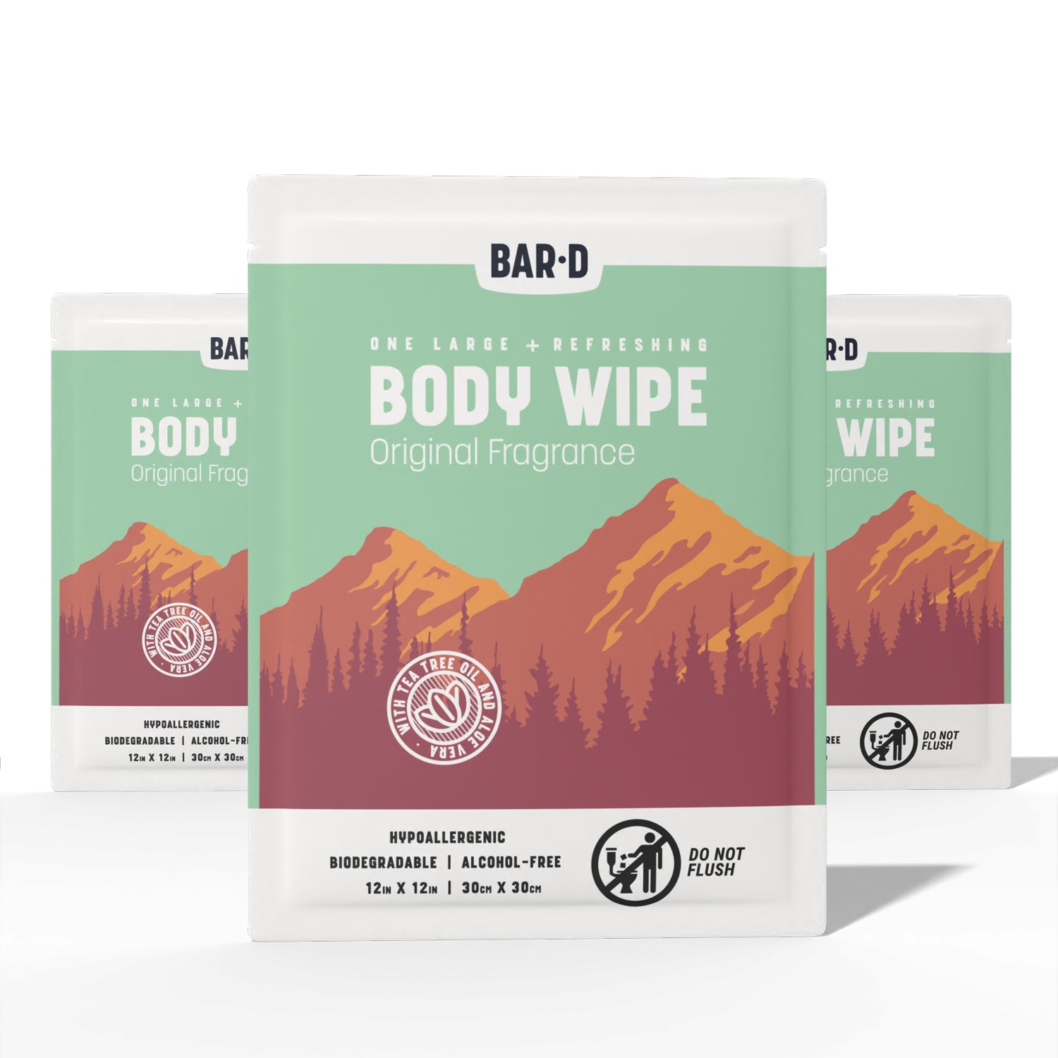 3 Pack - 60 individually wrapped body wipes with Tea Tree Oil & Aloe Vera (20 Count/Box)